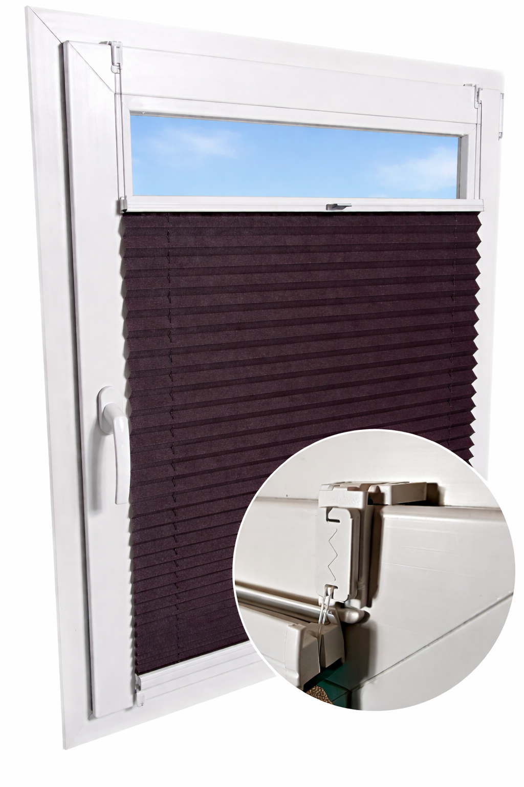 Plisa montowana jest bezpośrednio do listwy przyszybowej poprzez przykręcenie uchwytów śrubkami od góry i od dołu ramy szyby.