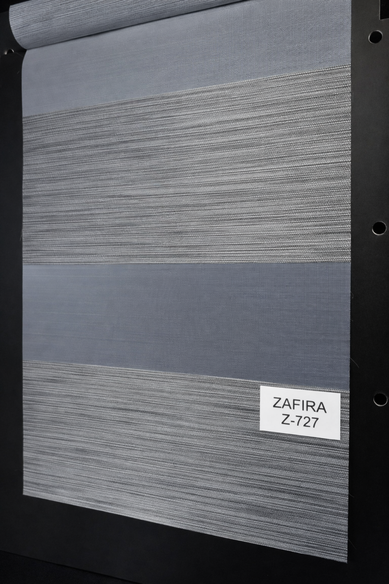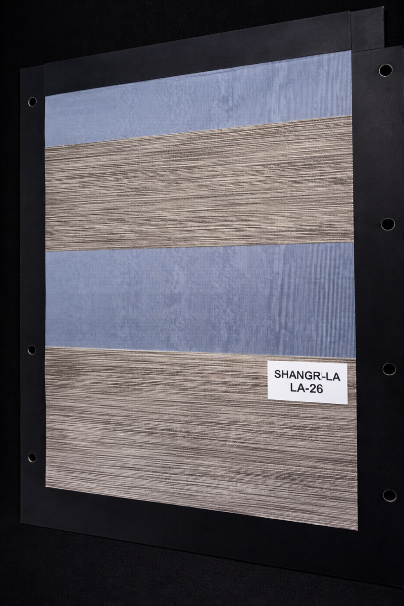 Materiał składa się z naprzemiennych pasów transparentnych oraz zaciemniających, które pozwalają wygodnie regulować ilość światła wpadającego do pomieszczenia.